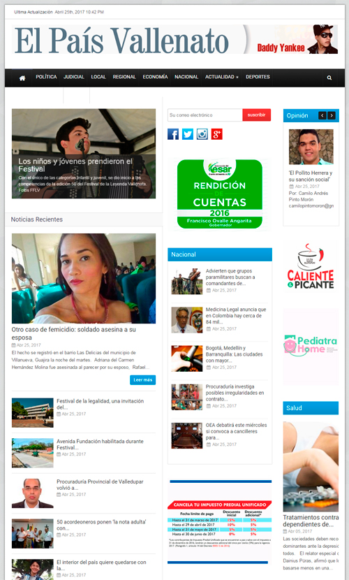 El periódico digital www.elpaisvallenato.com se renueva. Optimiza su imagen reflejando un concepto moderno, ágil, dinámico, avanzado, de fácil lectura, acorde a las últimas tendencias tecnológicas.