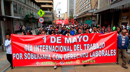 Miles de personas marcharon este domingo con motivo del Día de los Trabajadores, quienes protestaron por las condiciones salariales en el país, reclamaron que la paz llegue con justicia social y trabajo digno, y exigieron el fin de los asesinatos de líderes sociales.