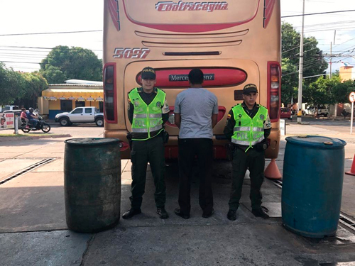 La Policía Fiscal y aduanera logró ubicar un bus que cubría la ruta Maicao – Valledupar en el kilómetro 1 vía Valledupar la Paz, que llevaba 130 galones de hidrocarburos de procedencia extranjera con este sistema. El conductor del automotor, de 39 años fue capturado y será judicializado por el delito de favorecimiento al contrabando de hidrocarburos.