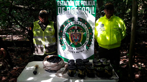 Tras labores de investigativas por parte de la Sijin del Cesar y personal de la Estación de Becerril se logró se adelantó un operativo sobre la serranía del Perijá, ubicando una bodega de explosivos, una vez acordonada el área se detectaron los elementos que estaban semi enterrados en la base de un árbol a orillas de una quebrada, donde se procedió a su extracción desenterrando dos costales plásticos.