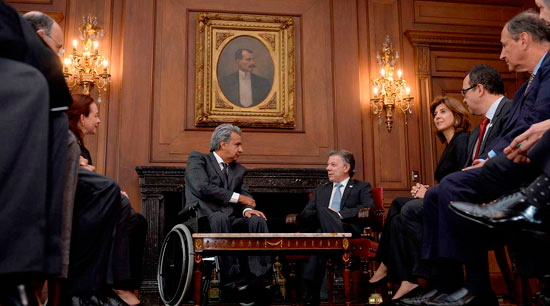 Por su parte, el presidente Santos resaltó que está «muy agradecido personalmente con el Ecuador, con el Presidente Correa y con el ahora Presidente Moreno, porque Ecuador siempre nos ha apoyado en el proceso de paz, nos está apoyando en el proceso de paz con el ELN, son los anfitriones del proceso”.
