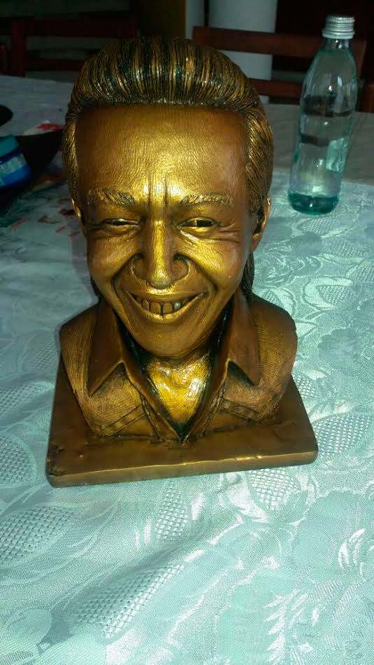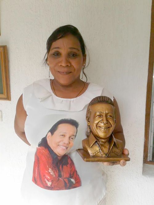 Eneida Cuadros, una seguidora de ‘El Cacique’ de la Junta, Diomedes Díaz, esta que no se cambia por nadie. Ella, residente en San Juan del Cesar, Guajira, recibió de regalo, desde Miami, un busto del cantautor que ubicó en el mejor espacio de su casa.
