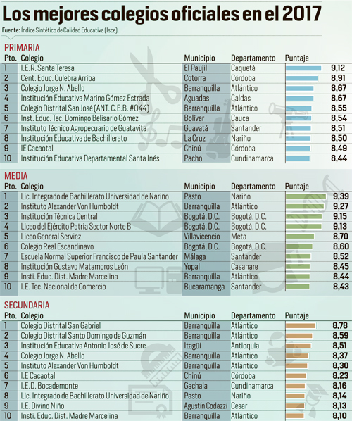 Este establecimiento con 249 estudiantes, se ha destacado a nivel nacional por sus logros educativos, al igual que el Cesar, que en la misma evaluación superó meta de calidad.