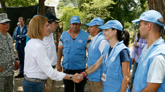 Allí, estuvo acompañada del Viceministro de Defensa, Aníbal Fernández de Soto, el embajador de Noruega en Colombia, Lars Vaagen, el Contralmirante Orlando Romero, jefe de Estado Mayor del Comando Conjunto de Monitoreo y Verificación y el comandante de la Décima Brigada del Ejército, general Pablo Bonilla.