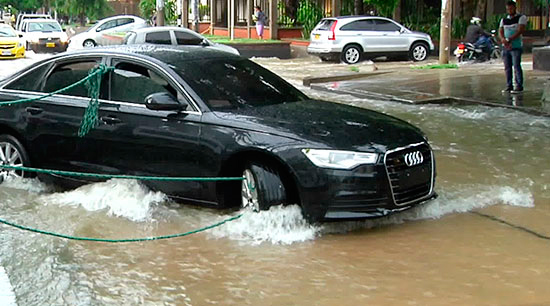 Dos personas rescatadas de arroyos y cuatro vehículos arrastrados por las fuertes corrientes tras torrencial aguacero en Barranquilla.