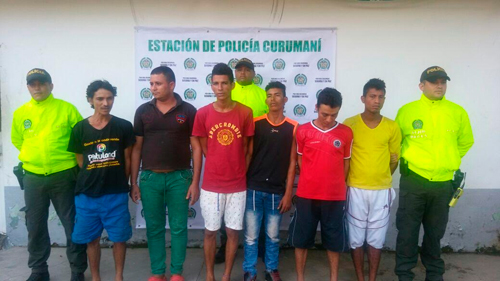 A través de diligencias de registro y allanamiento logran detener a Yesid Hernández Galvis, ‘El Soldado’, de 29 años; Luis Eduardo Téllez, ‘Lalo’, 28 años, Keiber Rodríguez Barón, ‘Yoli’, 26 años, Jorge Luis Duque Medina, ‘El Malo’, 21 años, Leonardo Rojas Carrascal, ‘Leo’, 31 años y Fernando Hurtado Ariza, conocido como Albis, de 22 años de edad. Los capturados fueron dejados a disposición de la Fiscalía 13 local de Curumani.