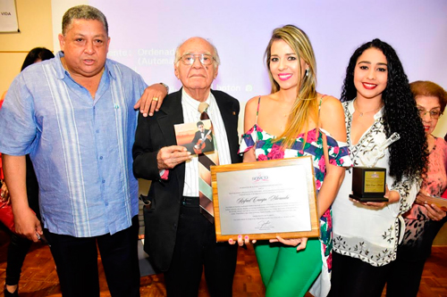 El hombre que convirtió el porro en poesía, recibió un gran reconocimiento por su exquisita y poética trayectoria musical. El Director Societario de SAYCO, maestro Armando Romero, entregó en nombre de la Sociedad una placa y trofeo honorífico, además de un reconocimiento económico, por la invaluable labor de este titán de la vida, que hoy tiene 99 años de edad.