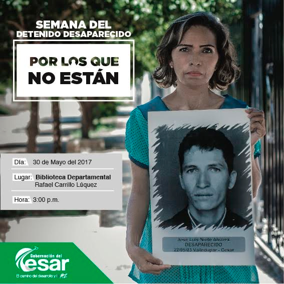 Con una ofrenda floral, una homilía y un homenaje a las víctimas, se cierra la Semana del Detenido Desaparecido a través de la campaña denominada “Por los que no están’. El evento liderado por la Gobernación del Cesar, se llevará a cabo en las instalaciones de la Biblioteca Departamental a partir de las 3:00 p.m. de este martes.