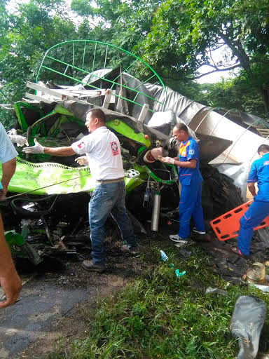 El hecho se presentó a las cuatro de la tarde en el kilómetro 84 e involucra a dos vehículos de carga pesada que se chocan de frente. “Uno de los conductores tiene un microsueño y el otro intenta esquivarlo, pero se chocan de frente y uno de los vehículos se voltea”, dice un testigo del lugar.