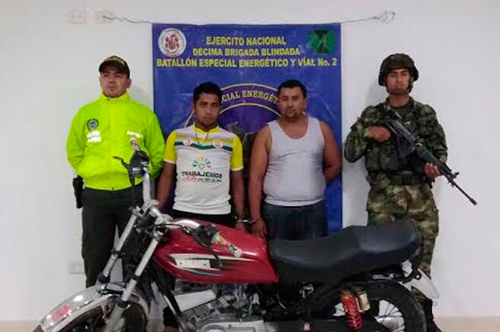 Los sujetos fueron capturados en flagrancia, por soldados del Batallón Especial Energético y Vial No 2 Coronel José María Cancino, en coordinación con la Sijin. Según las autoridades venían cometiendo hurtos a las fincas ganaderas y al sector comercial en los municipios de Chiriguana y La Jagua de Ibirico en el Cesar.