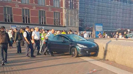 Ocho personas resultaron heridas luego de que un vehículo se abalanzara contra varios peatones que circulaban por una de las entradas de la Estación Central de trenes de Ámsterdam.