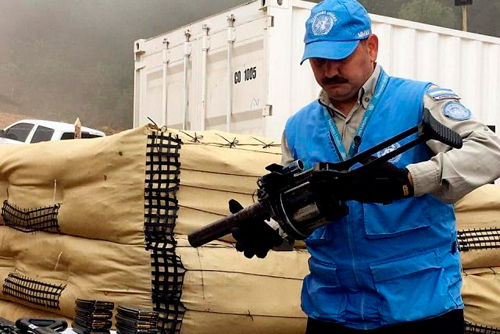 De acuerdo con un informe presentado este lunes por la ONU, “la Misión ha verificado 77 caletas de las cuales ha sido extraído el armamento y destruido municiones, explosivos y armamento inestable”.