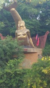 Una bandera del ELN fue instalada en la escultura de la ‘Sirena Vallenata’, en el balneario Hurtado, en la mañana de este martes. Tras verificar que no había explosivos, fue retirada por las autoridades.