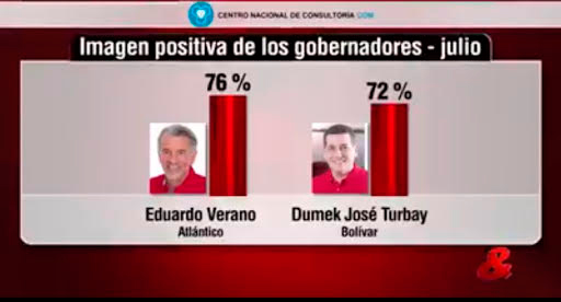 En primer lugar se ubicó Eduardo Verano de la Rosa de Atlántico con 76%, segundo Dumek Turbay de Bolivar con 72%, tercero Luis Pérez de Antioquia con 72% Cuarto el mandatario cesarense con 69% y quinto Jorge Emilio Rey de Cundinamarca con 66%