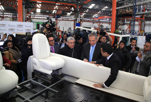 El vicepresidente de la República General Oscar Naranjo, y el Director Ejecutivo de la Visita Papal a Colombia Monseñor Fabio Suescún Mutis, visitaron la planta de General Motors para conocer los adelantos del proceso de fabricación de los tres papamóviles que usará Su Santidad el Papa Francisco en su visita a Colombia.