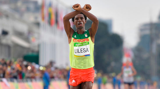 El etíope, Feyisa Lilesa, actual subcampeón olímpico, se coronó como campeón de la Media Maratón de Bogotá. Llegando a la meta entrelazó las manos por encima de la cabeza como protesta por la represión del Gobierno contra su tribu, al igual que lo hizo en Río de Janeiro.