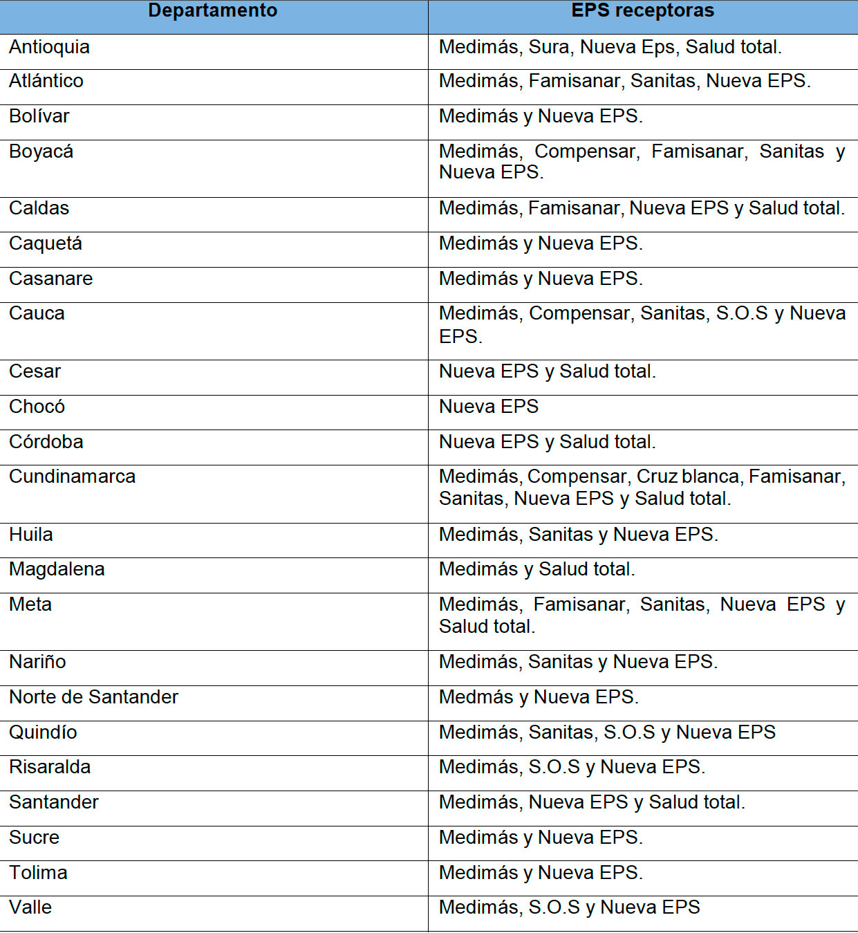 Desde el primero de septiembre, sus afiliados serán trasladados a diferentes EPS que operan en los respectivos municipios.