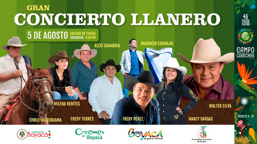 La gran propuesta para este evento, es que en el marco del Festival Internacional de la Cultura Boyacense, también habrá espacio para la música llanera. La ciudad de Sogamoso, será el escenario para el ´GRAN CONCIERTO LLANERO´, a realizarse el próximo sábado 5 de agosto en el Coliseo de Ferias de la ciudad.