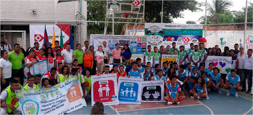 Durante el lanzamiento de la estrategia Drummond Ltd. realizó la entrega de balones y petos a los estudiantes y representantes de las instituciones educativas, que se utilizarán durante el campeonato como parte del aporte que hizo la compañía para el sostenimiento del programa. “Estamos comprometidos con la juventud, con promover escenarios de paz en las comunidades, y esta estrategia reúne los elementos para generar en estos adolescentes y jóvenes la apropiación de valores y principios que aporten a la sana convivencia”.