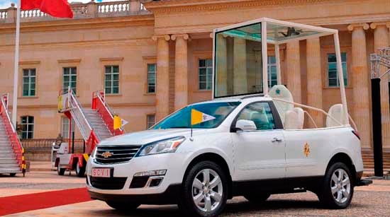 A solo 9 días de la llegada del sumo pontífice, las autoridades ultiman detalles, mientras que ayer el presidente Juan Manuel Santos agradeció el trabajo que hizo General Motors encargado de los vehículos que transportarán al Sumo Pontífice y aprovechó el evento para hacer un llamado a dar los diez pasos que se quieren dar con la visita del Papa. Con CM