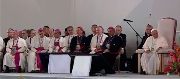 El papa escuchó con total concentración en el parque de las Malocas de Villavicencio, los testimonios de víctimas y victimarios, representantes de los que hoy acudieron al evento central de esta visita papal.