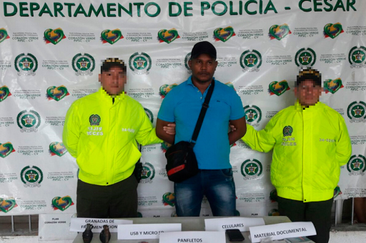 El sujeto fue detenido tras labores de inteligencia y apoyo de la red de informantes, en un allanamiento en una vivienda en el corregimiento Loma de Calenturas, en jurisdicción del municipio de El Paso. En su poder, según las autoridades, tenía dos granadas de fragmentación, panfletos alusivos a las Autodefensas Gaitanistas de Colombia, con mensajes amenazantes; dos terminales móviles de comunicación, memoria USB y micro SD, una agenda con apuntes en manuscrito de nombres y números de teléfono y alias de algunos integrantes de estar estructura criminal.