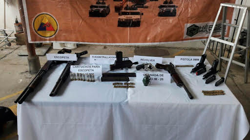 Al momento de allanamiento se encontró en su poder dos pistolas calibre 9 mm, tres escopetas calibre 12 mm, un revolver calibre 38 mm, una subametralladora mini Uzi calibre 9 mm, un proveedor para subametralladora, tres proveedores para pistola, 84 cartuchos calibre 9 mm, ocho cartuchos calibre 12 mm y una granada de fragmentación, materiales que fueron incautadas por las tropas.