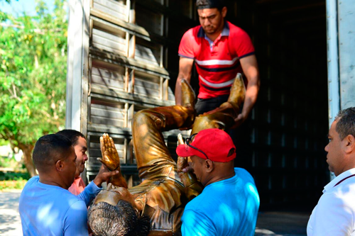 Con permiso de la Alcaldía de Valledupar, este martes en las horas de la mañana, se hizo el retiro, fueron necesario cerca de tres hombres para cargar el peso de 200 kilos que tiene la escultura hecha en resina epoxi recubierta de pintura poliéster y por dentro una estructura metálica.