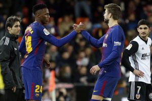 Yerry Mina se estrenó con el FC Barcelona. El central colombiano ingresó en lugar de Gerard Piqué a falta de seis minutos para terminar el partido ante el Valencia en Mestalla (0-2).