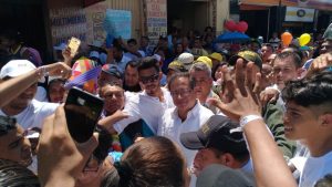 “La encuesta la recibo con optimismo, pero yo tengo un indicador para medir como avanzamos y la aceptación popular va aumento”, dijo en improvisada rueda de prensa en medio de la cantidad de personas que se acercaron a escuchar sus propuestas.