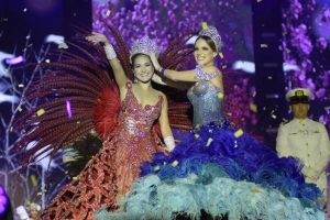 En medio de plumas y un rojo pasión la soberana de este año rindió tributo al centenario de la figura de la reina, además de brillar en medio de plumas y brillo del que se encargó Amalín de Hazbún.