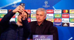 Los interrogantes sobre el partido por la fecha 16 de la Champions iban y venían, mientras el entrenador comentaba su posición sobre el juego y los periodista intervenían. De pronto, una petición dejó atónito al director técnico del Manchester United: una selfi en medio de la sesión de prensa por parte de un joven que sin importarle romper el protocolo no resistió a perder la oportunidad de retratarse con el entrenador.