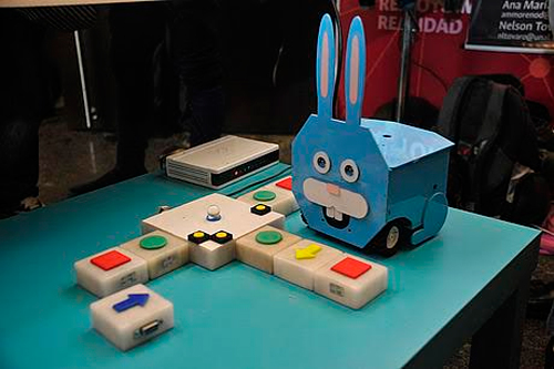 Una vez finalizado el ensamblaje, gracias a una serie de conectores que detectan la secuencia lógica de los bloques, el niño se dirige a una estación base conformada por un chip programado con un sistema de identificación –que hace las veces de cerebro– con el fin de procesar la información para luego enviarla a través de una red inalámbrica a un robot con forma de conejo que busca zanahorias.