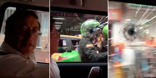 Por unas imágenes que circulan en redes sociales se generó la versión preliminar que daba cuenta que el carro, en el que se movilizaba el precandidato presidencial, Gustavo Petro, había sido impactado por cuatro disparos, sin embargo él mismo desmintió la versión.