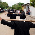 Penitentes no se flagelan. Unos 150 penitentes caminan a pie descalzo las calles de Valencia de Jesús, forrados con túnicas negras, para cumplir y pagar promesas a Jesús de Nazaret.