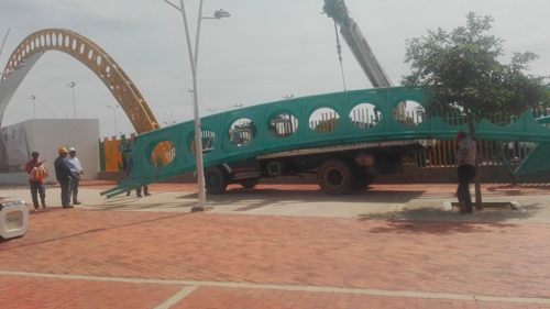 El Gobernador Francisco Ovalle Angarita había ordenado la reparación de la obra, en cumplimiento de las pólizas de estabilidad que se exigen en la contratación de este tipo de obras. Cumplidos los trámites, el contratista, quien asumió los gastos que ocasionaron los daños, luego de una evaluación y cotización de materiales, procedió esta semana al retiro de las estructuras afectadas y limpieza de las áreas para posteriormente instalar las nuevas piezas.