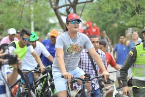 Vestido con su ‘mocho’, tenis chavitos, suéter gris y una gorra del Unión Magdalena, encabezó el ciclopaseo que atravesó barrios populares como La Esperanza, Garupal, Los Fundadores, Primero de Mayo y Los Caciques. Luego de una hora concluyó en la plaza Alfonso López en compañía de muchas personas que se sumaron a la jornada.