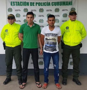 En el municipio de Curumaní, Cesar fueron capturados José Eliecer Parra Castillo, conocido como Chema, de 24 años de edad y Faber Andrey Carrascal Lesmes, conocido como Faber, 25 años de edad, en cumplimiento a orden emanada por el Juzgado Promiscuo Municipal de Pailitas, solicitado por la Fiscalía 19 Seccional de Curumaní Cesar, por los Delitos de Homicidio Agravado Articulo y Fabricación, Trafico, Porte o Tenencia de Arma de Fuego.