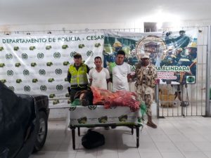 En operaciones de inteligencia militar llevadas a cabo entre el Batallón de Ingenieros N.10 “General Manuel Alberto Murillo González” de la Décima Brigada y la Policía del departamento del Cesar, se logró la captura de dos sujetos de 35 y 30 años de edad, quienes transportaban dos reses sacrificadas en pésimas condiciones de salubridad y sin los respectivos permisos reglamentarios.