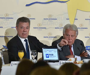 El Acuerdo de Paz firmado entre el Gobierno Nacional y las Farc “es irreversible en la práctica e irreversible legalmente”, reiteró el Presidente Juan Manuel Santos al intervenir en el Fórum Europa, evento que contó con la asistencia del expresidente español Felipe González y alrededor de 500 invitados especiales.