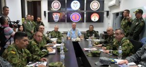 Desde el Puesto de Mando Unificado instalado en la sala estratégica de la Policia Nacional, Villegas revisó el transcurso de la jornada electoral, región por región, con especial atención en Bogotá, Tumaco y en las plataformas digitales.