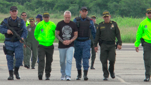 ‘Popeye’ fue embarcado a una tanqueta blindada del escuadrón antidisturbios, Esmad, con un alto dispositivo de seguridad hasta su traslado a la cárcel, ubicada hacia la vía al corregimiento de La Mesa, donde fue enviado por un juez de Medellín como presunto responsable de los delitos de concierto para delinquir y extorsión agravada.
