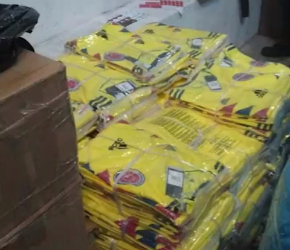 Luego de 13 allanamientos en Bogotá y Cali, la Fiscalía General logró la incautación de 5 mil camisetas falsas de la Selección Colombia, que estaban listas para ser comercializadas en diferentes regiones del país, y de 290 millones de pesos guardados en cajas fuertes, además de la captura de 9 personas que se dedicaban a la venta y fabricación de productos adulterados.