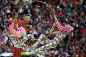 El show de inicio estuvo a cargo del cantante británico Robbie Williams, interprete de canciones como «Angels», «She’s the one» y «It’s only us», también estuvo presente el exfutbolista brasileño y leyenda de la FIFA, Ronaldo, ganador además de dos mundiales y Aida Garifullina, reconocida cantante rusa que hace parte de la Opera de Viena.