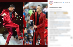 La comparación la hacen con el atuendo que se puso el urumitero días pasados en el lanzamiento de su nuevo álbum discográfico, Esto es vida, y la vestimenta que utilizo Robbie Williams este jueves en la inauguración.