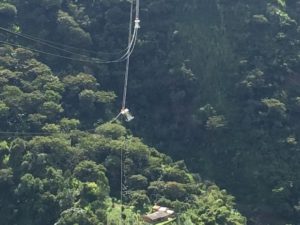 Hacia la media noche de este domingo se logró felizmente el rescate de 4 personas, entre ellas una niña de cinco años y su madre, que quedaron atrapadas en una cabina del cable aéreo de Palmitas, cuando disfrutaban de un paseo.