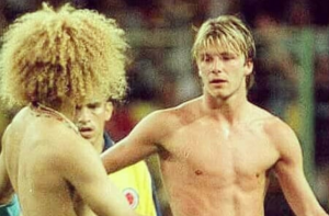 Después de celebrar con sus compañeros el importante triunfo, Beckham rápidamente buscó en la cancha a quien había sido su ídolo desde que era un niño: Carlos ‘El Pibe’ Valderrama. Caminó hacia él y le pidió un intercambio de camisetas, a lo que el capitán de la selección colombiana accedió sin problema dándole un apretón de manos.