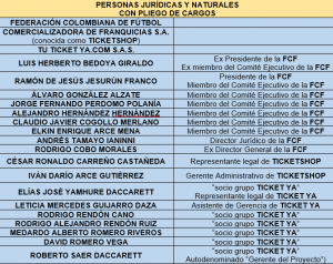 La Superintendencia de Industria y Comercio, después de más de 10 meses de indagaciones, formuló Pliego de Cargos a la Federación Colombiana De Fútbol (Fcf), Ticketshop, Ticketya, sus altos directivos y varias otras personas, por haber planeado, diseñado y ejecutado una estrategia o procedimiento que habría dado como resultado la desviación masiva de boletas con fines de reventa para los partidos de fútbol disputados por la Selección Colombia en su condición de local en la ciudad de Barranquilla en el marco de la Eliminatoria al Mundial Rusia 2018.