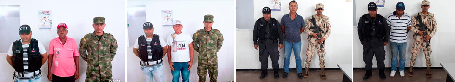 Tropas del batallón de Alta Montaña n.°7 adscritas a la Décima Brigada, en coordinación con el CTI de la Fiscalía General de la Nación, capturaron en los municipios de Agustín Codazzi y Becerril, departamento del Cesar, a cinco sujetos, quienes eran requeridos por el delito de acto sexual abusivo con menores de 14 años de edad.