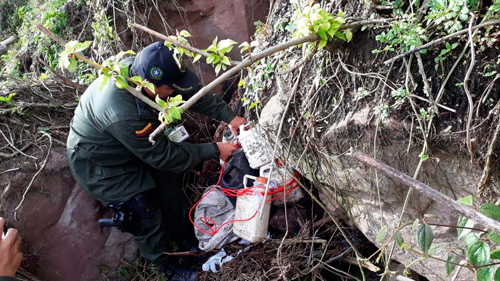 La operación fue liderada por miembros del Batallón de Alta Montaña n.°7 y Sijin de la Policía Nacional de la Paz, en el que ubicaron el depósito ilegal enterrado en una cueva natural al costado de un sendero veredal, al parecer perteneciente al Frente Juan Manuel Martinez Quiroz del Grupo Armado Organizado ELN.